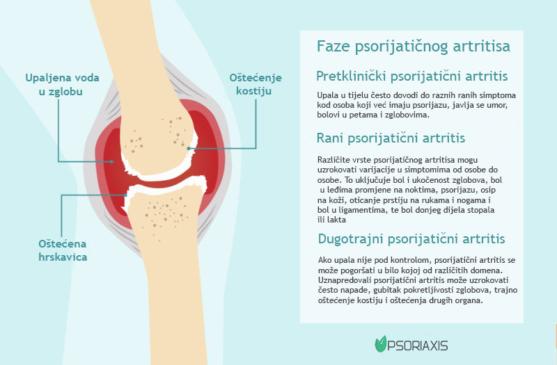 Psorijatični artritis je tip artritisa koji se javlja kod osoba s psorijazom, kroničnom kožnom bolesti karakteriziranom crvenim mjehurićima prekrivenim bijelom prevlakom. Ova bolest može utjecati na različite dijelove tijela, uključujući kožu, nokte i zglobove. Većina ljudi s psorijazom će razviti simptome artritisa u nekom trenutku u životu.Važno je napomenuti da neće svi ljudi s psorijazom razviti psorijatični artritis i nemaju svi ljudi s psorijaznim artritisom psorijazu. Ako sumnjate da imate psorijatični artritis, važno je razgovarati sa svojim doktorom. Oni mogu pomoći u određivanju najboljeg načina liječenja za upravljanje simptomima.